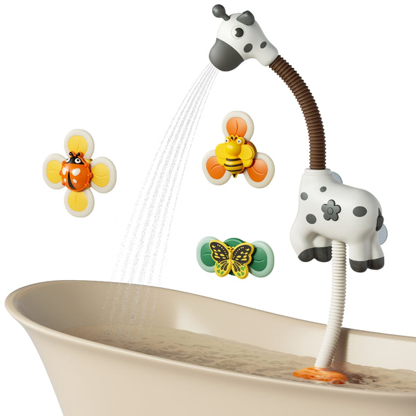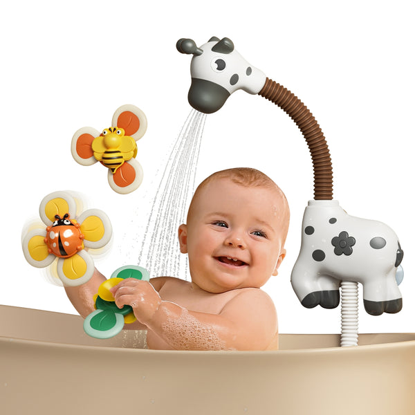 - MAKE BATH TIME EASIER & HAPPIER-For newborns, the shower head has gentle shower pressure and easy to control, great for rinsing baby's hair and getting them used to water over head without getting it into ear or having it run down their face. For kids don't like bath, the cute and colorful bath toys can attract babies' attention and keep them busy in the whole bath time, makes bath-time fun and efficient for child and parent. Also great to play with it outdoors in the sun with a bucket of water.
