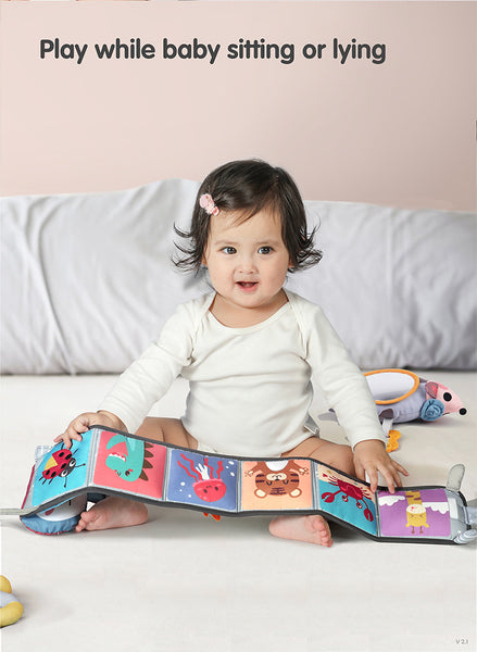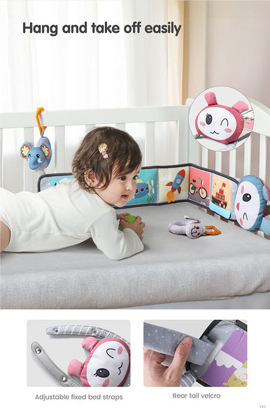 TUMAMA Baby Crib colored Hanging Toys & Soft Cloth Book Set